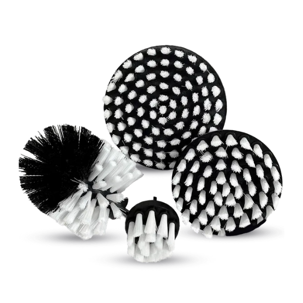 O JOGO DE ESCOVAS ROTATIVAS DE CERDAS MACIAS são feitas com um plástico premium e cerdas densas de polipropileno, multifuncional. Possuem um ângulo de limpeza de 360º e conectores de 1/4 de polegada para encaixe em ferramentas manuais, garantindo uma troca rápida de componentes.